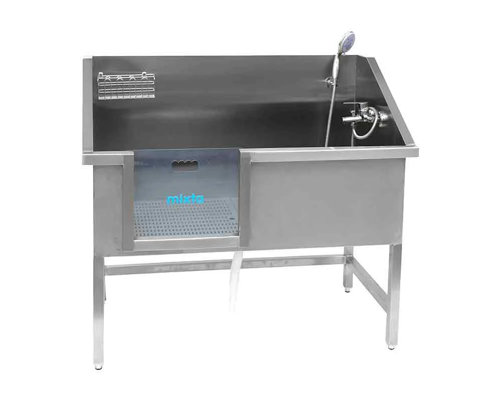 Mixta Hayvan Yıkama Evyesi, veteriner klinikleri, barınaklar, pet kuaförleri ve hayvan bakım merkezlerinde hijyenik ve güvenli temizlik süreçleri sağlamak için tasarlanmış profesyonel bir yıkama ünitesidir. Tamamen paslanmaz çelik gövde yapısı sayesinde uzun ömürlü kullanım sunar ve suya, kimyasallara ve yoğun iş temposuna karşı üstün dayanıklılık gösterir.