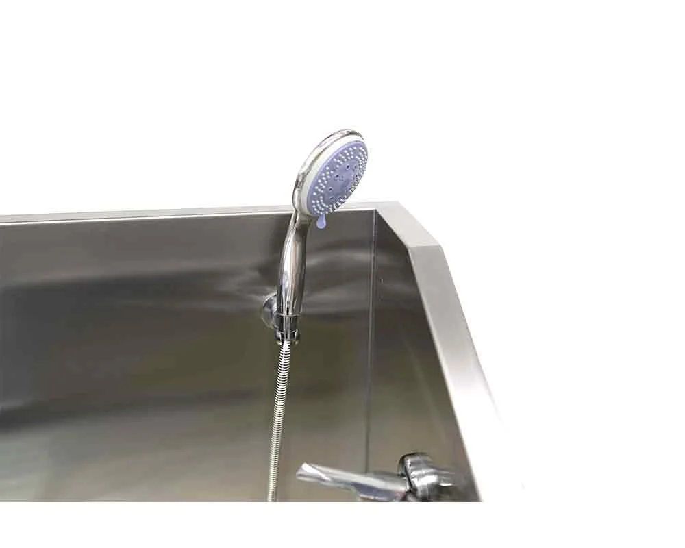 Evye üzerinde yer alan askılık, duş başlığı bağlantıları ve opsiyonel ekipmanlar, yıkama sürecini hızlandırarak profesyoneller için üstün bir kullanıcı deneyimi oluşturur. Temizlik sonrası su tahliyesi kolaydır ve paslanmaz yüzeyler sayesinde bakımı zahmetsizdir.